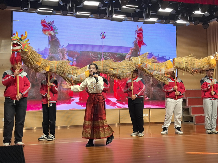 随后,英语节汇演正式拉开帷幕,节目内容丰富多元,兼具趣味性与文化性。既有《孔融让梨》《孟母三迁》《神笔马良》等融合中华传统故事的英语表演,让传统文化在英语语境中焕发新活力;也有《卖火柴的小女孩》这类经典外国童话的演绎,展现了跨文化交流的魅力。《草把龙》中,李瑾妍、郑雅诗等小朋友身着民族服饰,伴着轻快节奏舞动,吴梓琳用流利纯正的英语热情地介绍金口的非遗草把龙,将传统民俗与英语活动巧妙结合。《孔融让梨》的表演者们神态真挚,用流畅的英语对话还原经典场景,传递谦让美德;诗朗诵《Wind on the hill》意境悠远,张馨月、李姝妍等同学发音标准,语调抑扬顿挫,让在场观众沉浸在诗意氛围中;《Nian 年》以生动的剧情、精美的道具再现年兽传说,孩子们的表演生动传神,赢得阵阵掌声。歌曲《Monster》节奏动感,翁楚玥用清亮的嗓音诠释旋律,台风稳健;《Proud of you》则温情满满,演唱者们用真挚情感传递正能量。《孟母三迁》的表演者默契配合,台词功底扎实,将孟母教子的故事演绎得入木三分;《神笔马良》中,刘道言等同学凭借灵动的表情和自然的肢体语言,让经典神话焕发生机。