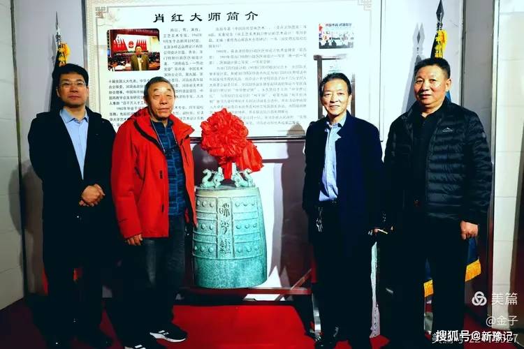 肖红大师见到自己设计的《和平钟》,往昔合作的场景如潮水般涌上心头,不禁感慨万千,随即与《和平钟》合影留念。