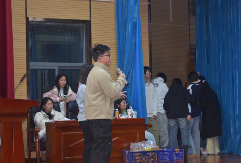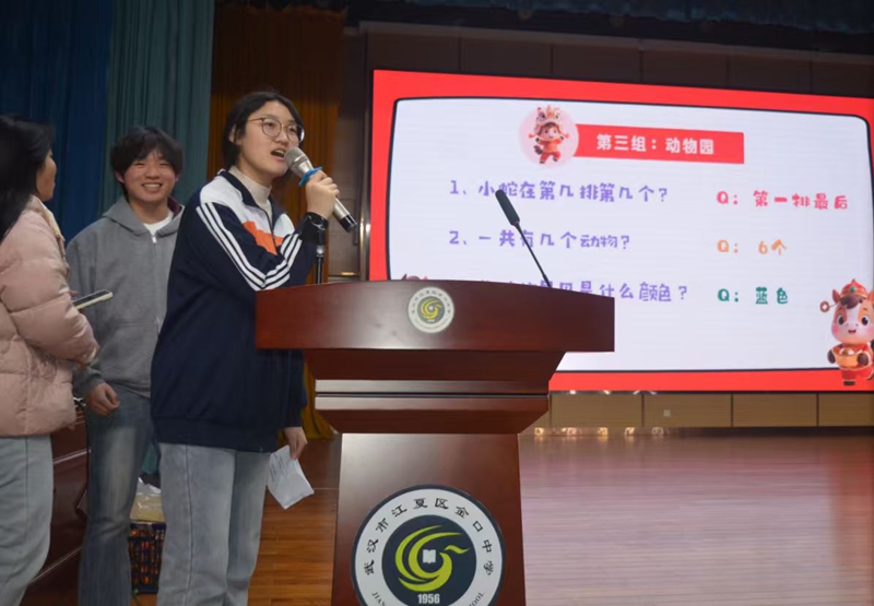 表演间隙,精心设计的互动游戏让礼堂化作欢乐的海洋。“你比划我猜”环节中,同伴搭档默契十足,一方用生动夸张的肢体语言奋力描绘,另一方凝神思索。“断句大挑战”则巧妙地将语文知识融入娱乐,一句“下雨天留客天留我不留”在不同断句方式下意义迥异,引得同学们争相抢答,思维的火花在游戏中悄然碰撞、绽放。