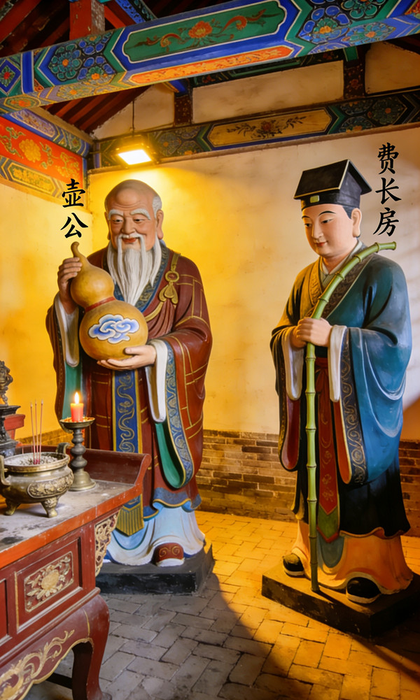 四方百姓感念恩德,悲痛不已。王氏族人带头捐资建庙,塑像供奉,占地五十余亩,晨钟暮鼓,香火鼎盛。初名仙王庙,后来费长房功德圆满归天升仙之后,后世人感恩他传承壶公仙脉,悬壶济世,护佑一方之德,将他于壶公一同共奉在仙王庙,遂将庙名更名为仙翁庙。