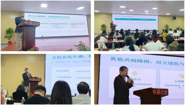 在课题分享环节,多位权威专家奉献了精彩报告:华中科技大学余毅震教授提出“筛查—预警—干预—转介”一体化校园心理支持模型;武汉大学肖劲松教授剖析拒绝上学行为的心理机制及干预策略;江汉大学余香莲副院长强调家庭、学校、社区协同发力的系统干预模式;十堰太和医院陈雄主任介绍物理治疗在青少年抑郁中的前沿应用。报告兼具理论高度与实践温度,赢得阵阵掌声。